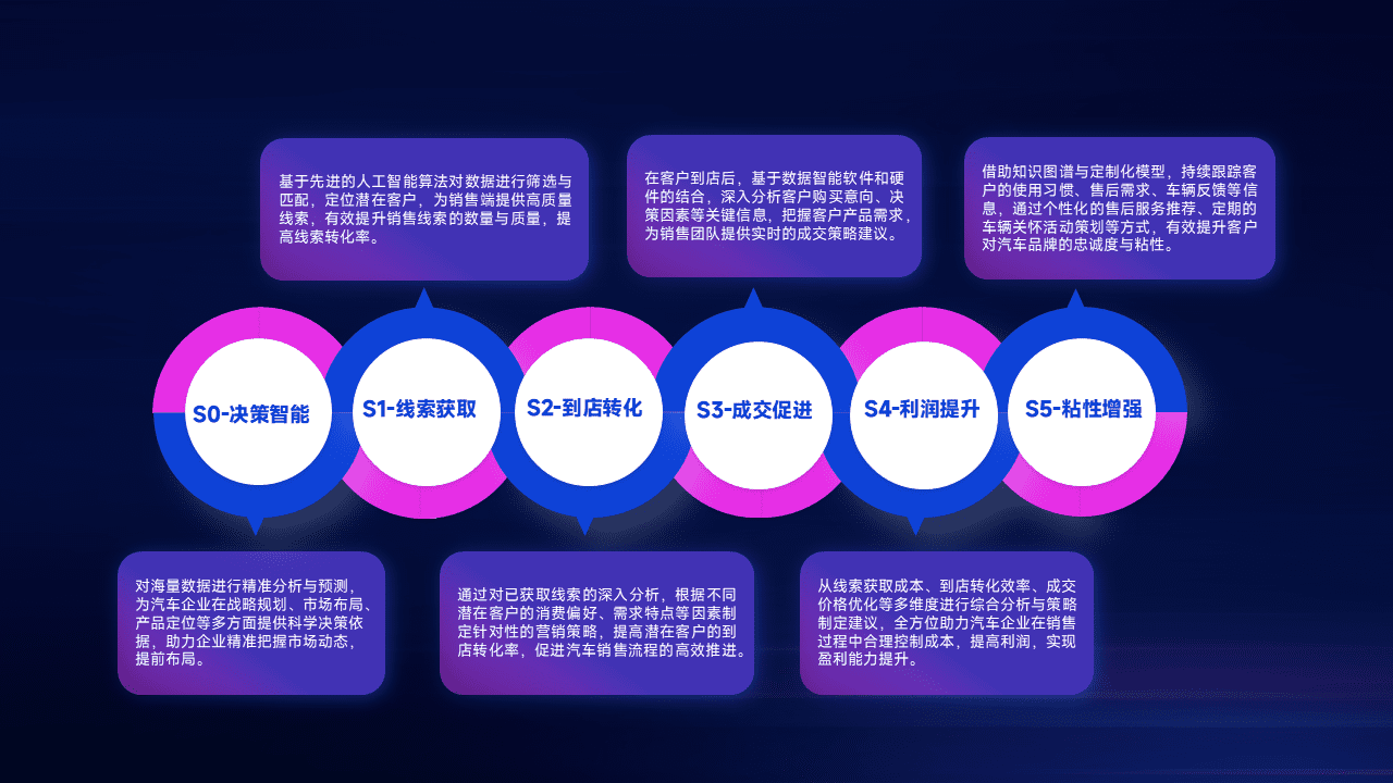 通过拓宽潜在客户来源、、、、优化线索分配并提高到店转化率,,,,以增强销售效率。。。同时,,,,利用线索数据不断优化分析模型,,,,有效提升转化率,,扩大营销影响力。。